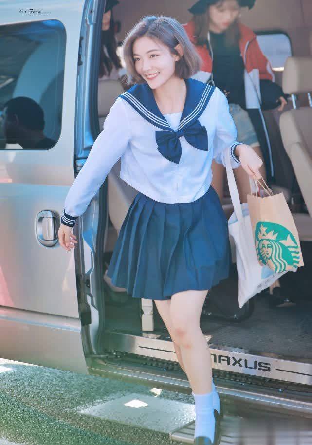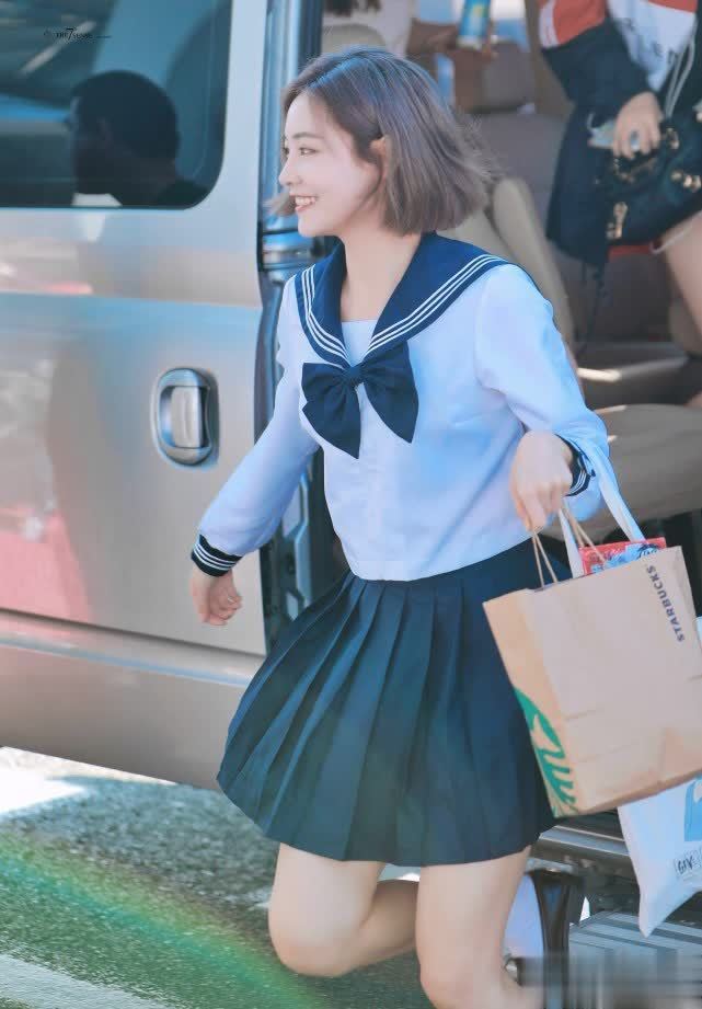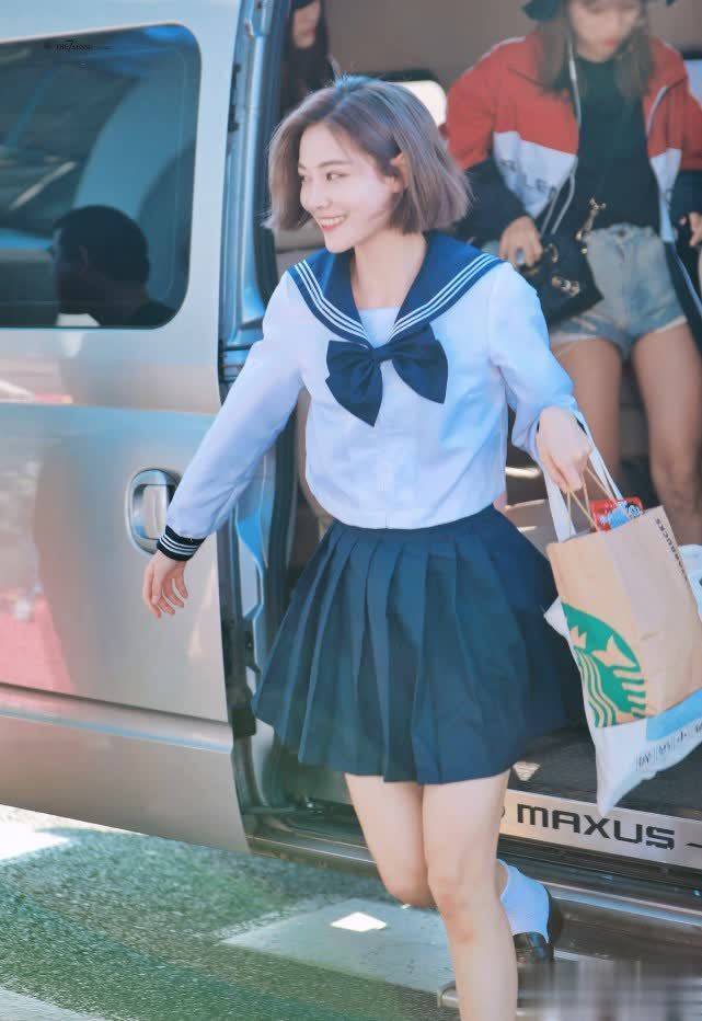 作为女爱豆的许佳琪,她平时装扮大部分都是帅气时髦的类型,而这一次穿着海军风衬衫配百褶裙,十分甜美迷人,笑起来很有初恋的感觉。